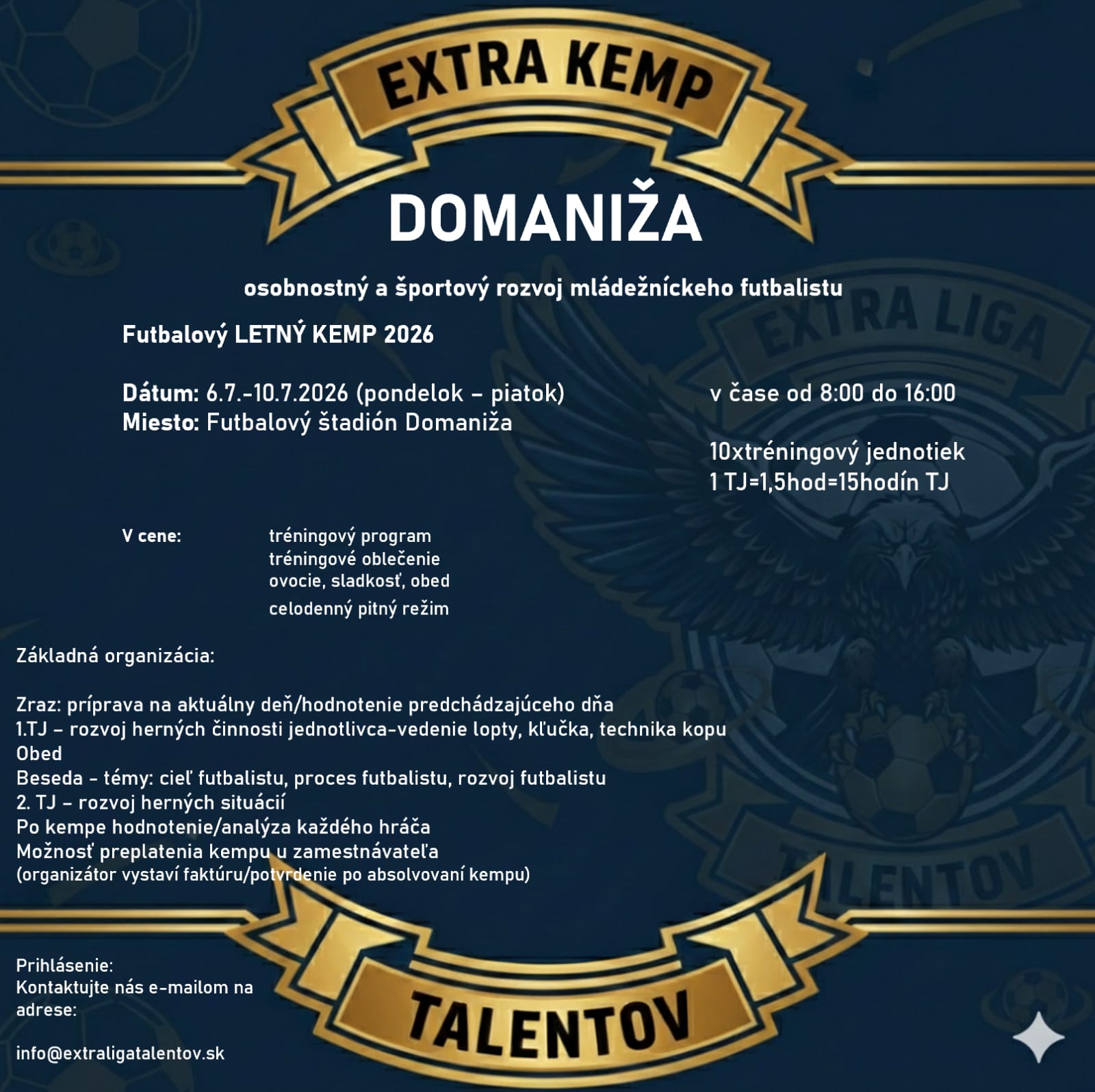 - Logistická záťaž pre trénerov: Tréneri majú učiť deti techniku a taktiku, nie tráviť hodiny vybavovaním povolení, objednávaním dresov či riešením obedov. My preberáme operatívu, aby sa oni mohli venovať hre.